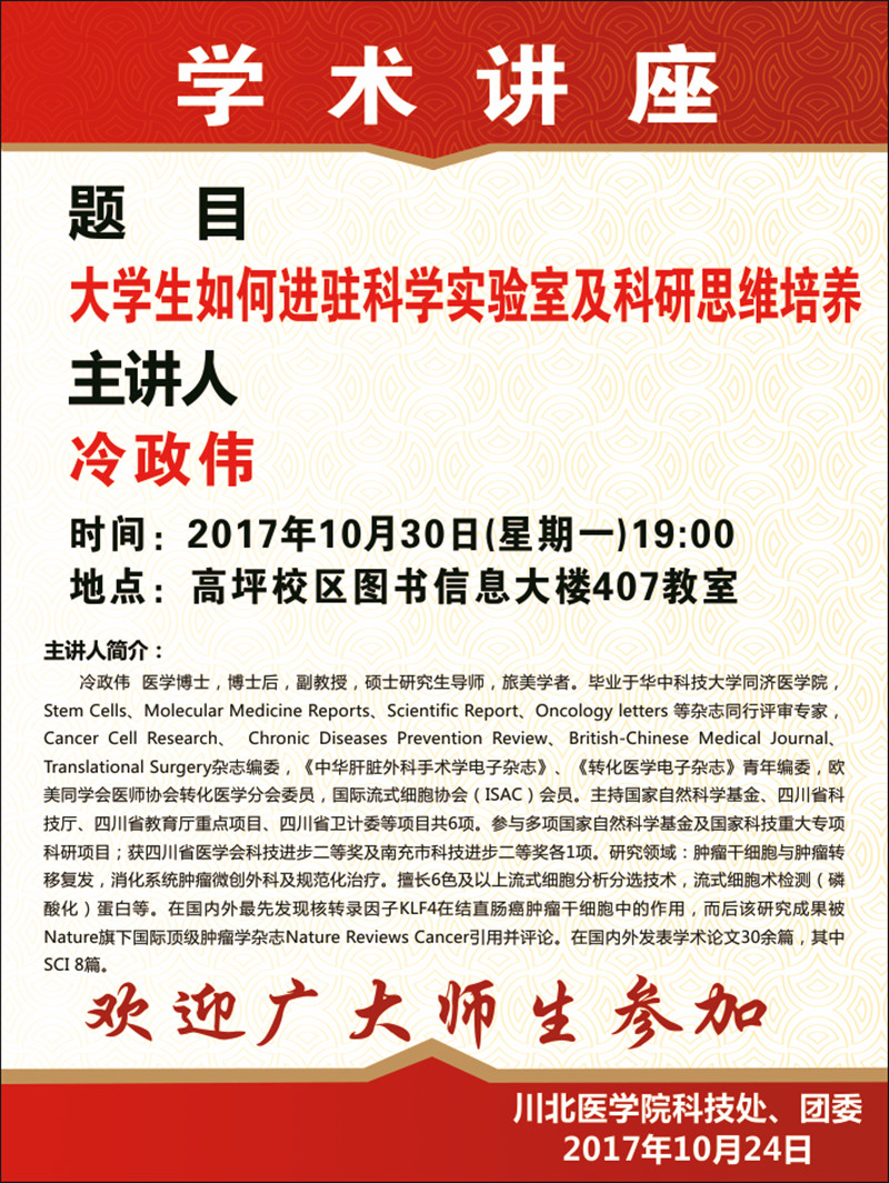 学术讲座:大学生如何进驻科学实验室及科研思维培养