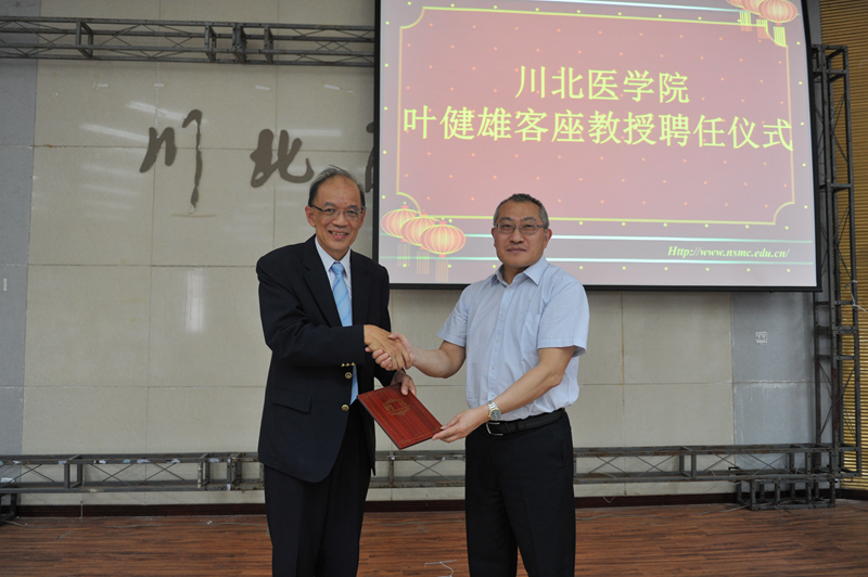 5月14日下午,香港理工大学叶健雄教授聘任我校客座教授仪式在高坪校区举行,学校院长杜勇、人事处处长樊国康和眼视光学系师生近300人参加。聘任仪式由眼视光学系主任兰长骏教授主持,樊国康宣读了聘任文件,杜勇为叶健雄颁发了客座教授聘书。