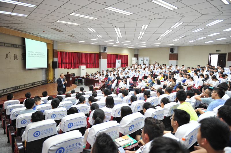 聘用仪式结束后叶健雄教授用英文为眼视光学系全体师生做了《Optometry in the Healthcare System》专题讲座,深入浅出地为师生们讲解了香港的医疗保健系统,亚太地区大多数国家视光师短缺的现状,指出视光学应牢牢扎根于初级保健,在社会老龄化和强调生活质量的背景下,视觉保健服务需求将增加,指明了眼视光学专业的发展前景和就业方向,坚定了学生的专业信心。在与学生英文互动环节中,叶健雄教授耐心解答学生们提出的问题。