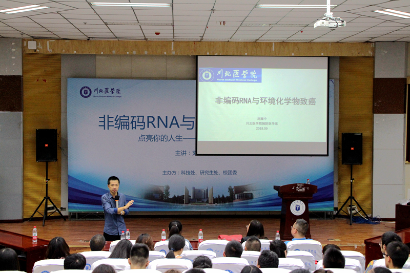 为了提高广大师生的科研意识、培养科研思维、激发科研兴趣。9月26日晚,以“非编码RNA与环境化学物致癌”为主题的“点亮你的人生--川北医学院博士论坛”第二堂讲座在我校高坪校区图书信息大楼407教室圆满举行。我校预防医学系刘振中博士担任主讲人,各院系师生400余人参与此次讲座。