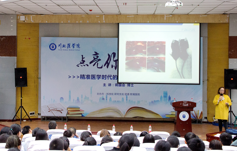 10月17日晚,以“精准医学时代的基础及临床研究思考”为主题的“点亮你的人生--川北医博士论坛”第三讲于我校高坪校区图书信息大楼407举行,主讲人为我校附属医院蒋国会博士,我校各院系师生代表等400余人共同聆听了本次讲座。