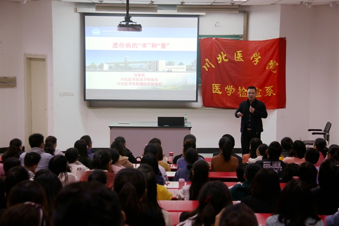 为了让学生深入了解遗传病的相关知识,拓宽知识面,近日,医学检验系在顺庆校区一教101教室开展了“遗传病的‘率’和‘量’”主题知识讲座,该系教师刘青松博士担任主讲。医学检验系主任、附属医院检验科主任唐中,副主任邢艳,转化医学研究中心副主任郭晓兰,教师代表以及2015级全体学生到场聆听。