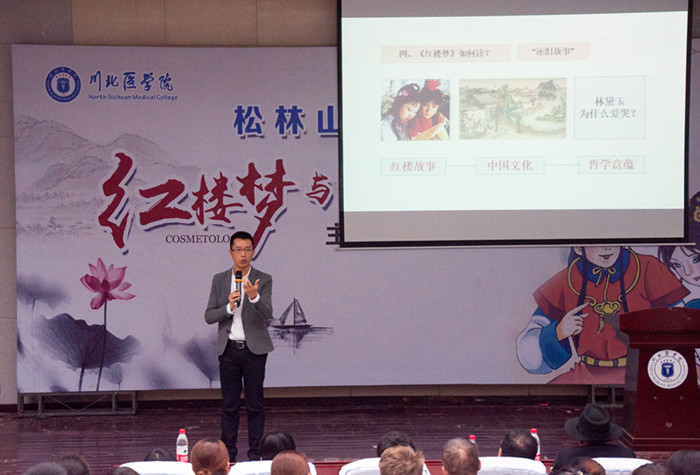 为展现中国古典小说的独特魅力,弘扬中国传统文化,近日,我校在高坪校区图书信息大楼407教室举办以“红楼梦与中国传统文化”为主题的松林山大讲堂活动。讲座特邀红学研究专家、四川国际标榜职业学院马经义副教授主讲。学校党委副书记朱燕萍,宣传部、校团委的老师和500余名学生代表聆听讲座。