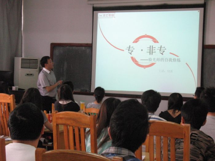 日前,浙文眼镜有限公司营运总监、高级讲师付新应邀到眼视光学系为眼视光学专业2009级同学授课。此次授课的题目为“专与非专—验光师的自我修炼”。付新从验光师的专业工作环境入手,结合专业特点,深入的讲解和探讨了验光师的职业素质、职业要求、职业生涯规划等问题。付新深入浅出的分析,幽默的语言受到了同学们的欢迎,受到了大家的一致好评。
