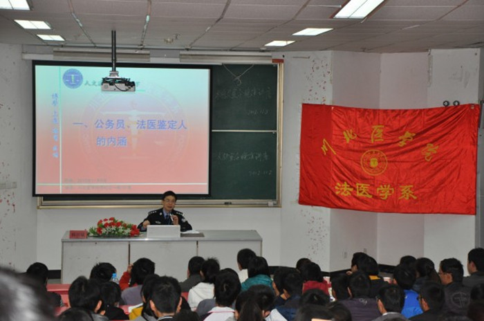 近日,南充市公安局顺庆区分局刑事科学技术室副主任、副主任法医师韩治斌应邀来校作了题为“公务员·法医鉴定人”的专题讲座。讲座就法医学系学生就业途径与现状、公务员考试技巧及职业选择等内容,通过韩治斌详尽的讲解和耐心的解答,使在座师生对公务员考试、法医工作及相关问题有了进一步的了解。