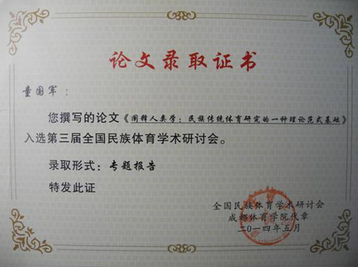 研讨会上,各地专家学者紧密围绕“传承、创新、发展民族传统体育的历史与未来”这一核心主题进行了专题交流,深入探讨我国民族体育历史传承与现代化发展、民族体育文化传播与学校体育开展等内容。童国军老师的《阐释人类学:民族传统体育研究的一种理论范式基础》一文深入的剖析了当前我国民族传统体育研究不可或缺的问题意识和民族体育文化的传承与发展等问题,受到与会专家和学者们的一致好评。