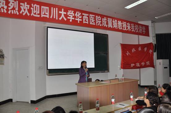 10月21日,四川大学华西医院主任护师成翼娟教授应邀到我校讲学,并在顺庆校区第一教学楼503室我校师生作了题为《护士职业生涯规划与专业发展》的学术报告。