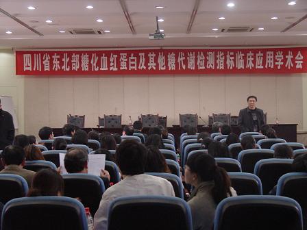 2011年4月7日下午,由南充市医学会主办,川北医学院附属医院检验科、内分泌科承办的“四川省东北部糖化血红蛋白及其他糖代谢检测指标临床应用学术会”在附属医院影像六楼学术厅隆重举行。会议由附属医院科技科刘剑平主任主持,川东北地区医院内分泌领域临床医生、检验科技术人员及我校附属医院的临床医生、护士、进修生等共计150余人参加了此次学术会。