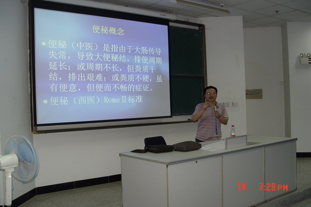 2010年9月14日晚7点,学院科技处在顺庆校区第一教学楼102教室举办了一场全院学术讲座。我院中西医临床医学系何德才副教授作了题目为《中西医结合治疗慢传输型便秘》的学术报告,我院部分师生参加了本次学术讲座。