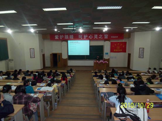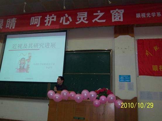 为促进全院同学了解更多用眼、爱眼知识,更好预防眼部疾病,10月29日晚,由眼视光学系主办、眼视光学系李建华老师主讲的“爱眼知识”讲座在高坪校区北一教室举行。全院二百多位同学聆听了此次讲座。