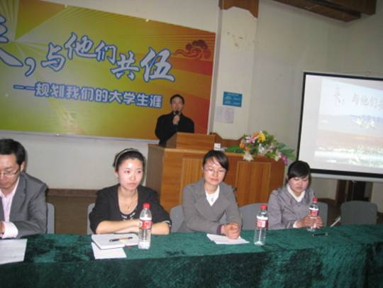 讲座以四川大学MBA、西南交通大学博士,人文社科学院邓渝老师所作的“大学生职业生涯规划”为主线,围绕什么是大学生职业生涯规划、怎样做职业生涯规划、职业生涯策略、职业生涯评估等进行了专业讲授,并就当前本科生所关心的考研,考公务员,创业、就业等热点问题给出了中肯的建议。两度获得国家奖学金学生文思思、2009年四川省“三下乡”优秀个人张永丽以及来自外国语言文化系和公共事业管理专业的考研成绩在417分—350分以上、成功通过四川省公务员考试的五名优秀学生代表分享了自己的经验和心得体会。