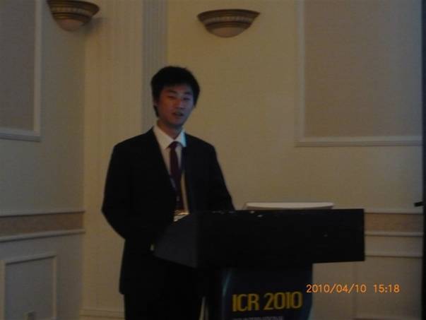 肖波同学是我校首届影像医学与核医学研究生毕业生。今年3月赴维也纳出席2010年European Congress of Radiology (ECR),就2篇论文“MRI findings of chronic pancreatitis coexisting with pancreatic carcinoma.”、“MR imaging for normal pancreas of piglets and the related anatomy.”进行大会交流。在本次大会上,肖波应邀成为ECR 2010 Corresponding Member。