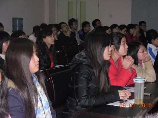 讲座在轻松愉快的氛围中进行,讲座结束后师生还进行了相互讨论。讲座在大家的掌声中结束。