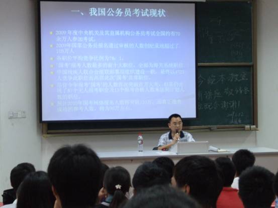 曾恩泉老师从公务员考试的现状、公务员考试热度不断增高的原因、公务员考试的相关知识及应注意的问题及法医专业毕业生与公务员考试的关系对公务员考试进行了解析,对在校学生如何准备公务员考试提出了建议并就同学们的疑问作了相关的解答。
