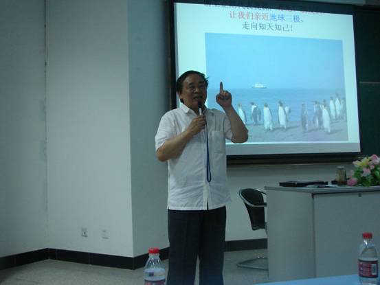 高登义研究员以其在40多年来的珠峰、雅鲁藏布江大峡谷、南极和北极等科考经历,用生动、幽默、诙谐和极富感情的语言、丰富翔实的资料、优美而充满情趣的极地动物图片,就自然与科学的关系、全球气候变暖等问题进行了深入浅出的讲述。并以科考工作中悟出的“与天知己其乐无穷、与地知己其乐无穷、与人知己其乐无穷”的乐观的科学精神和人生态度,激励同学保持一颗年轻的心态,一双审美的眼睛,亲近自然,留心生活,笑迎风雨人生的生活理念。
