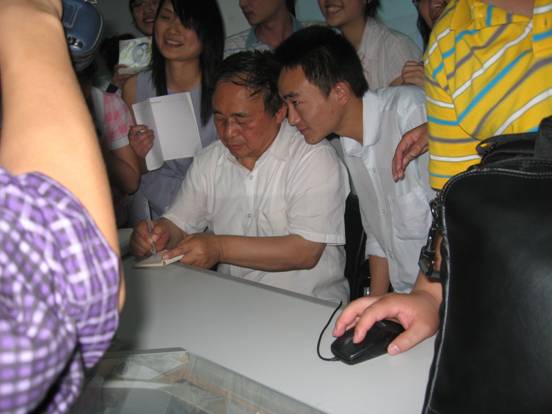 在讲座中,高老师与学生积极互动,学生反映热烈。讲座后同学们聚集在高登义研究员身边签名、合影,纷纷表示听了高老师的讲座,受益匪浅。高老师也为图书馆赠言“知天知己,笑迎科学人生”。