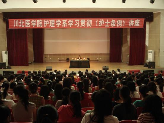 在第96届国际护士节到来之际,为深入学习贯彻2008年5月12 日正式实施的《护士条例》相关知识,5月11日上午,由川北医学院护理学系主办,南充市政协常委、南充市知名律师、我院法律顾问郑其银主讲,关于学习贯彻《护士条例》讲座在顺庆校区世纪礼堂隆重举行。学院附属医院党委书记任军,学院护理学系副主任、附院护理部主任胡定伟,护理学系学生科、各教研室老师以及附属医院内、外、妇产、儿科等各科护士长30余人参加,护理学系学生近千人聆听了本次讲座。讲座由护理学系党总支副书记雷庆明主持。