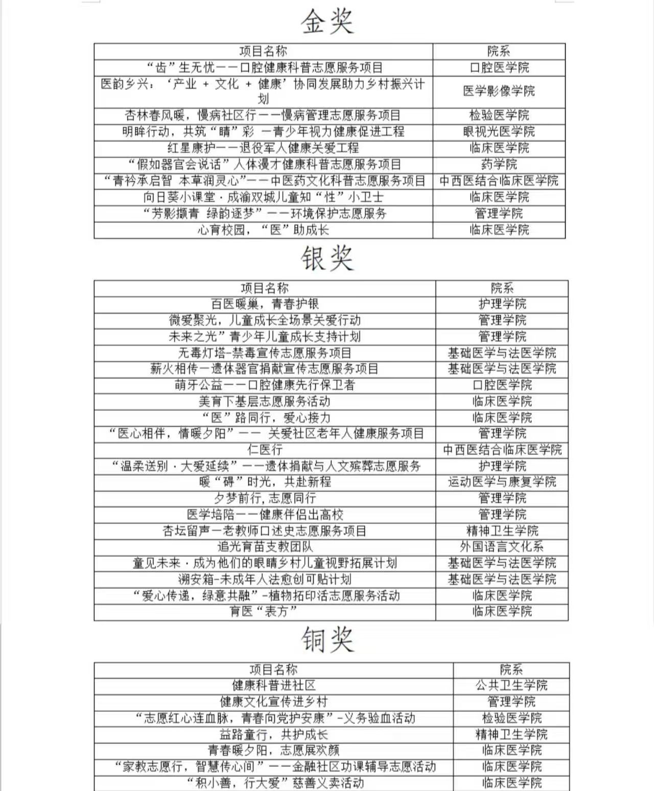 大赛由校团委牵头主办,其核心宗旨在于激发广大学生的创新思维活力,积极推进产学研深度融合,推动新时代四川青年志愿服务高质量发展,培育时代新人,为凝聚新时代青年力量等方面作出了突出贡献,为贯彻落实“健康中国2030”规划纲要注入了新的青春活力。