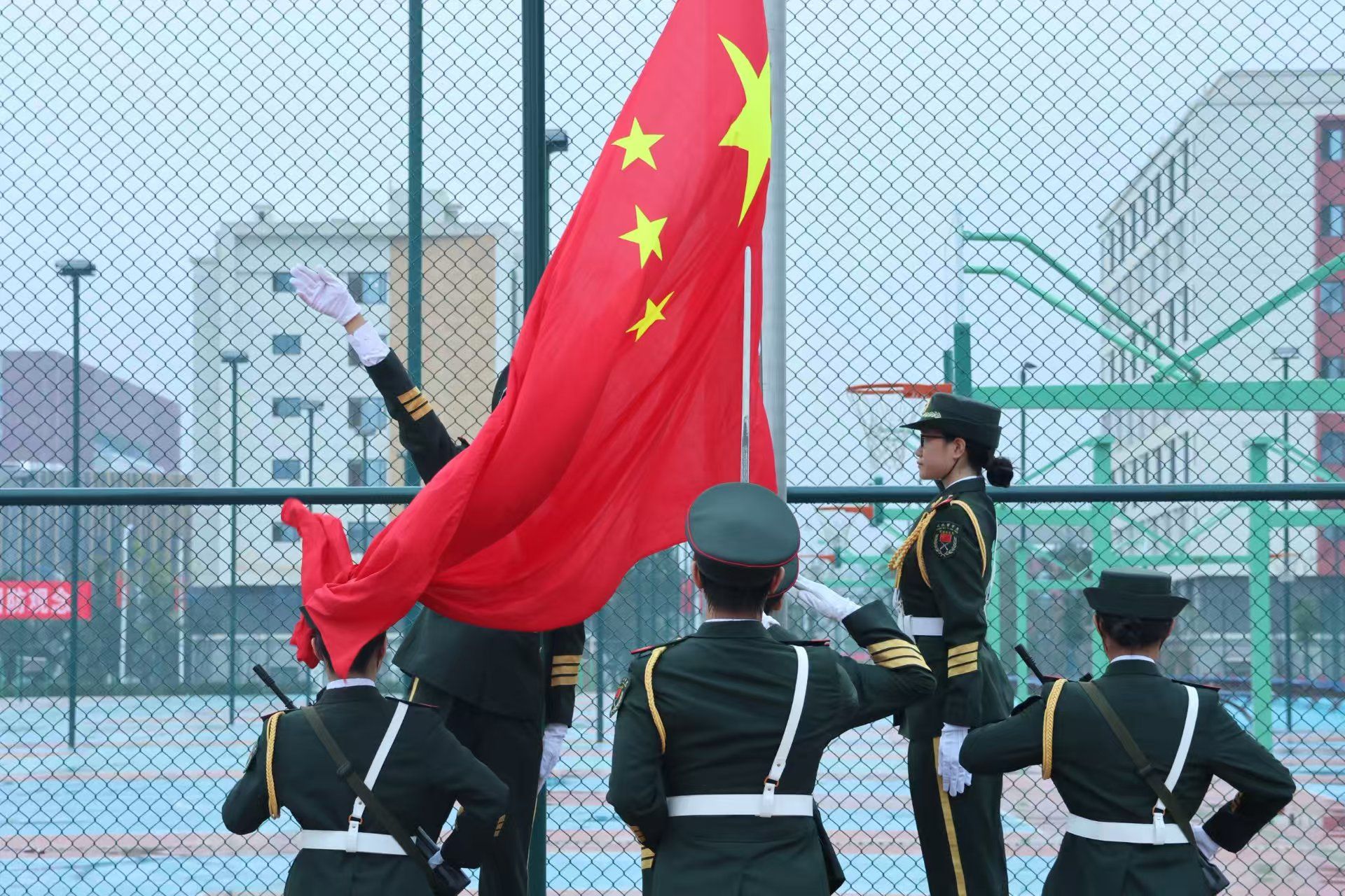 朝阳初升之际,雄壮的《义勇军进行曲》响彻全场。全体国旗仪仗队队员目光如炬、动作精准,护送五星红旗冉冉升起,在场学生全体肃立、行注目礼,爱国热忱与奋进豪情在晨光中交融。本次升旗仪式,旨在让同学们以国旗为信仰坐标,把课堂里的医学知识转化为医者使命的行动力,在新征程上勤学笃行、锤炼本领,用青春韶华书写新时代医学生的责任答卷。