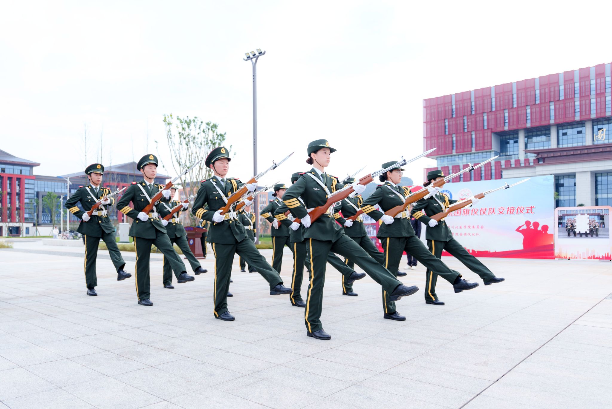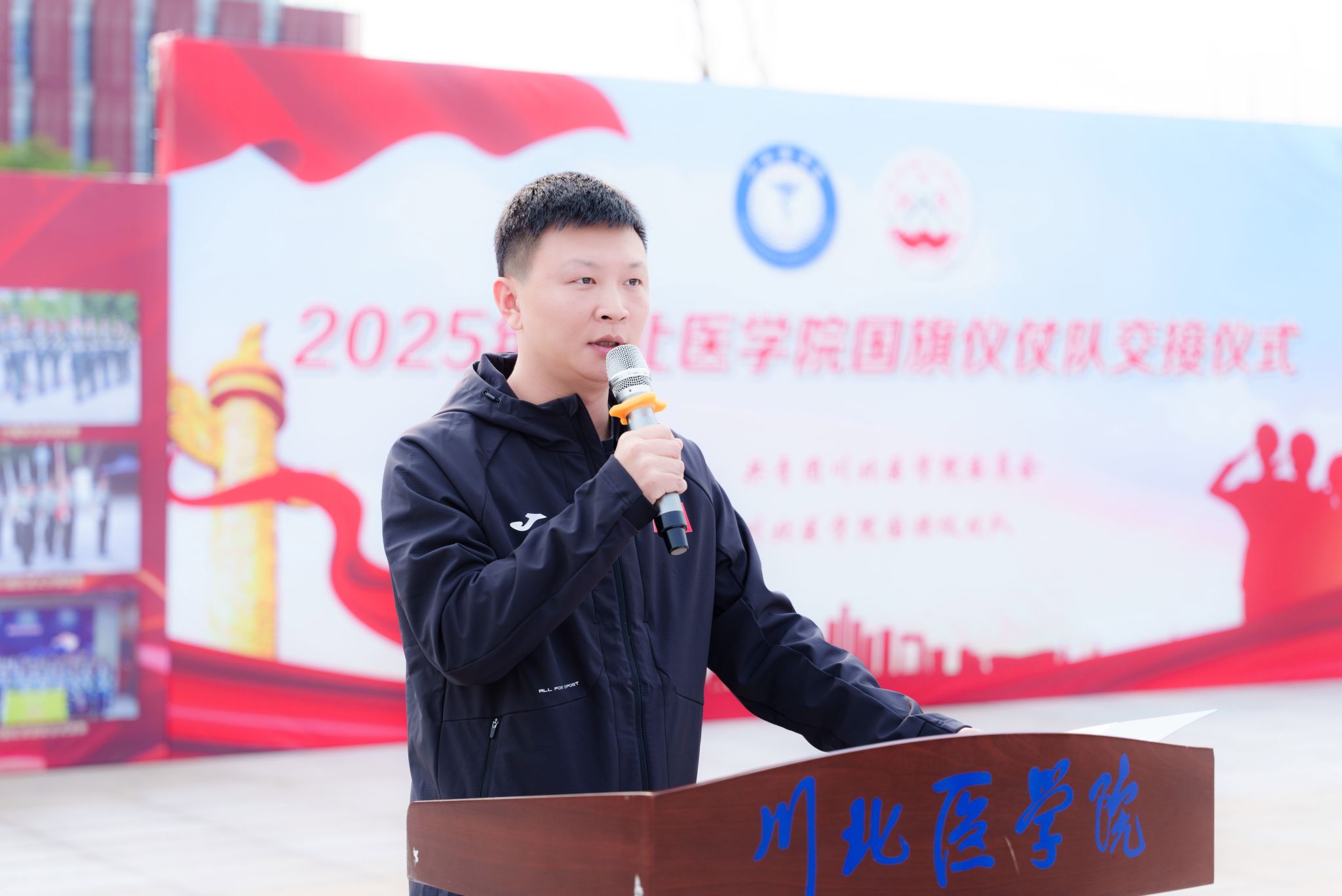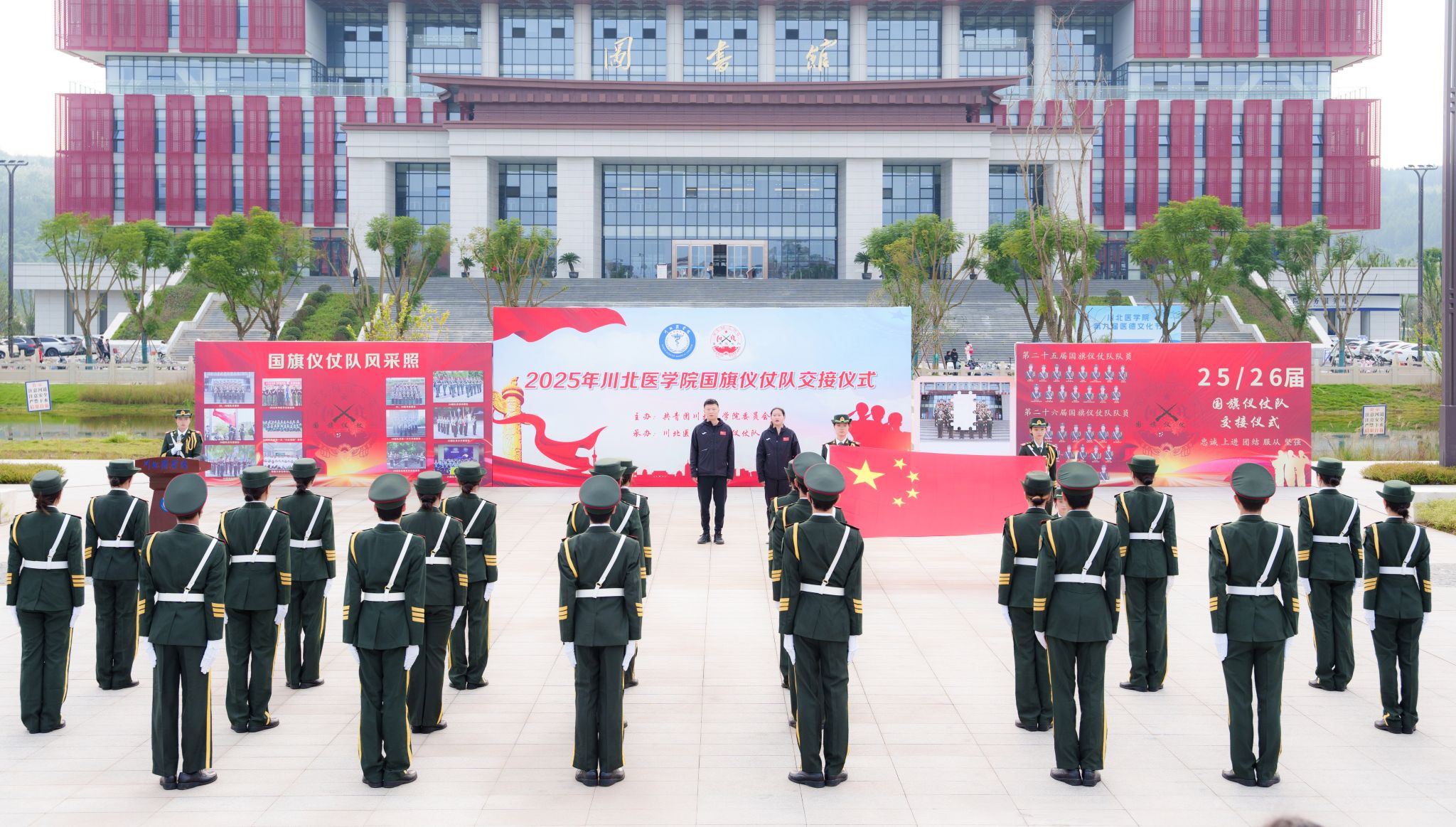 为弘扬爱国主义精神,传承仪仗使命,坚守护旗信仰,11月20日,川北医学院国旗仪仗队第二十五届与第二十六届队员交接仪式于川北医学院弘医楼广场举行。活动邀请西南石油大学国旗护卫队代表、西华师范大学国旗护卫队代表以及我校团委老师、学生代表共500余人参加。