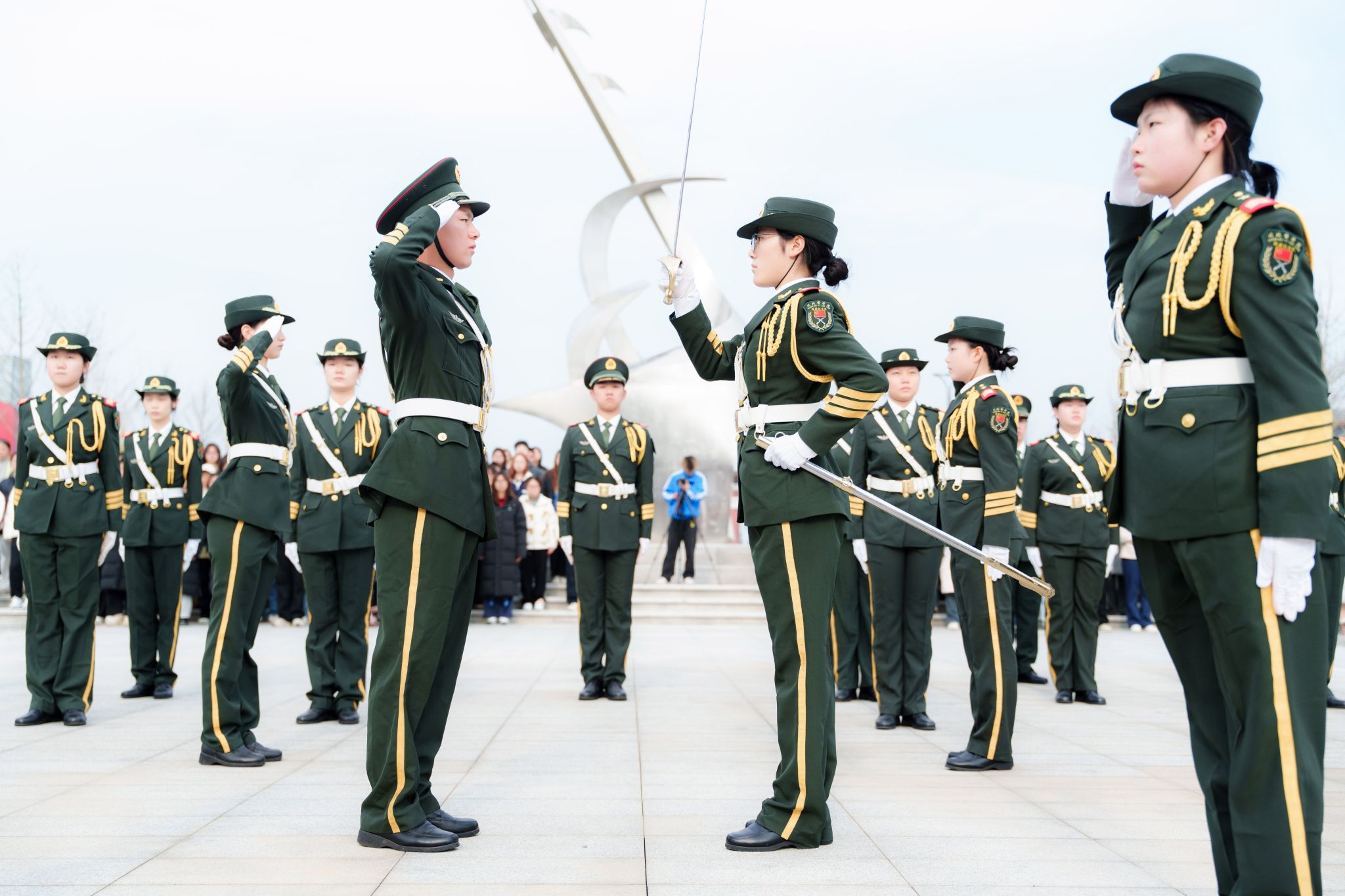 此次交接仪式还依次完成了授刀,授枪,授旗的交接工作,将仪仗使命,护旗信仰一届一届传承。