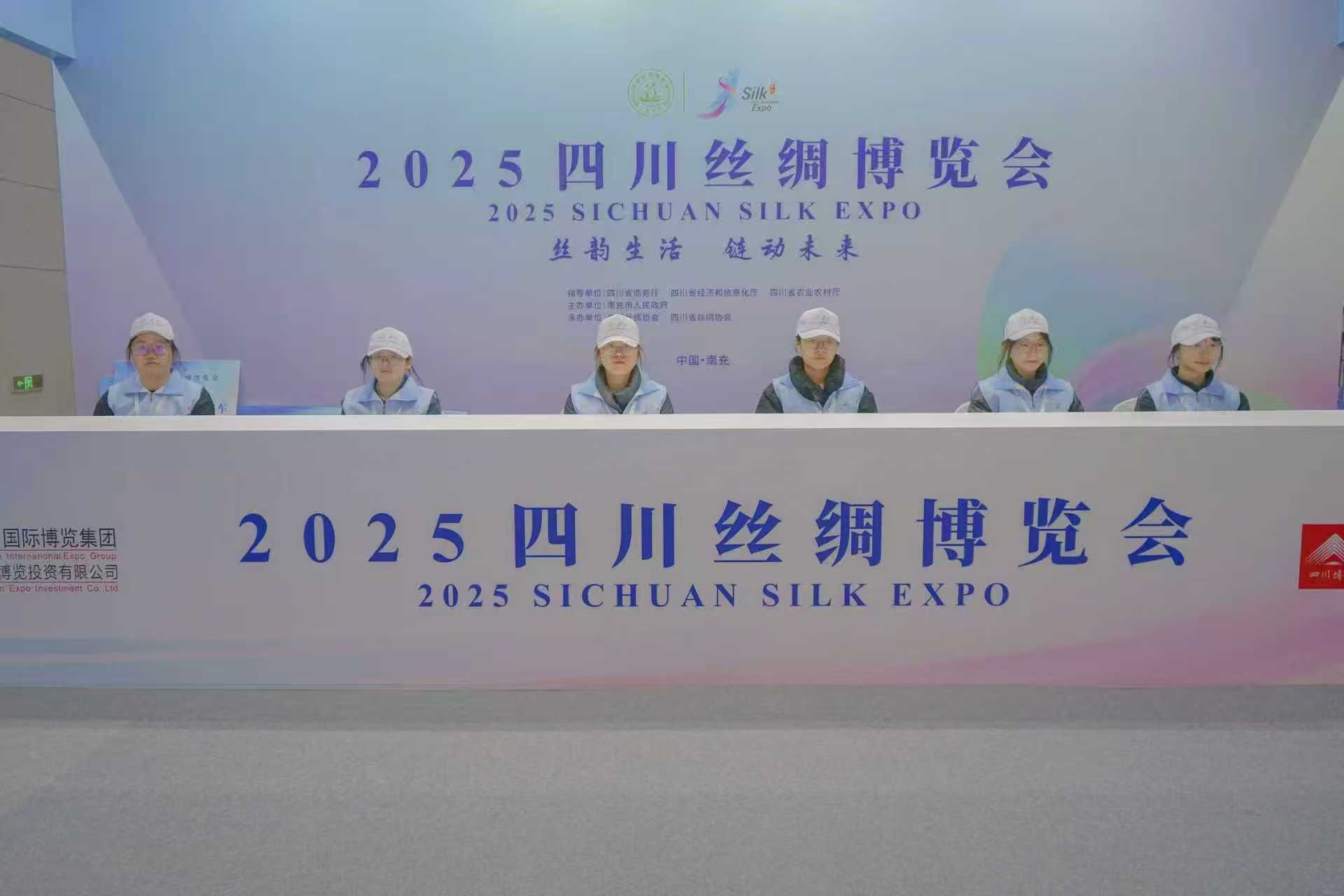 博览会期间,志愿者们有序开展嘉宾引导、展区讲解、秩序维护、咨询服务等志愿服务。他们穿梭于各个展区,协助工作人员完成展品陈列、观众分流等工作,向与会嘉宾和市民简要介绍南充丝绸的历史渊源、制作工艺及文化内涵,成为丝博会中一道靓丽的青春风景线。我校志愿者以严谨细致的工作态度、热情饱满的服务精神,保障了展会各项流程高效顺畅。