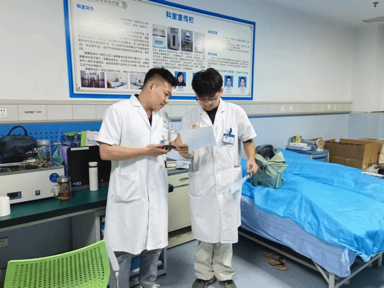 下午,蔡静转至遂宁市中心医院康复分院,走访该院区实习学生,详细了解同学们的轮岗安排、设备使用熟练度及医患沟通能力提升情况。得知部分学生有考研意愿后,她特别叮嘱:“实习是专业成长的重要阶段,要在保证实践质量的前提下合理规划复习。学院将持续提供考研资料、信息咨询和模拟面试等支持,做大家的坚实后盾。”