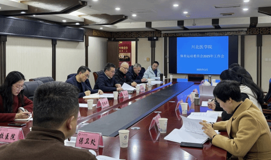 3月14日上午9点在川北医学院顺庆校区科技楼4楼召开2025年川北医学院体育运动委员会工作会议。学校党委常委、副校长、体育运动委员会主任何永斌、校体委、校工会、体育部、以及体育运动委员会各代表参会,会议由何永斌主持。