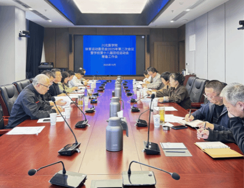 10月21日上午9点在川北医学院临江校区行政楼411召开体育运动委员会2025年第二次会议暨学校第十八届田径运动筹备工作会议。学院党政办公室、宣传部、教务处、计划财务处、学生工作部、校团委、体育部、校工会、后勤管理处、校地合作处、保卫处、国有资产管与实验室管理处、校医院、附属医院工会、网络与信息化中心职能部门负责同志参加了会议。会议由校体育运动委员会主任、副校长何永斌主持。
