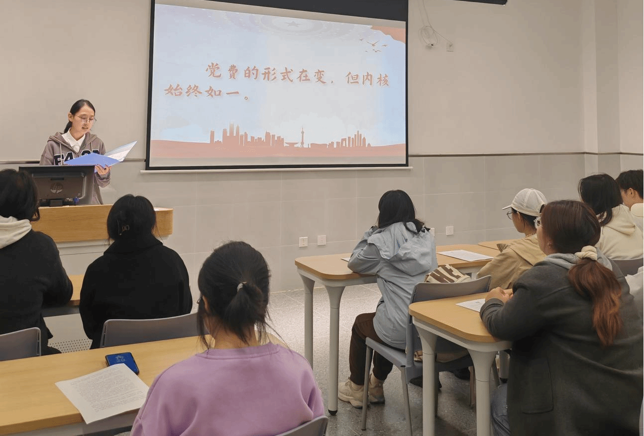 会上特别播放党员交党费的感人案例短片:既有老党员周才盛弥留交党费的历史传承、黄旭华院士以党费践诺一生的岗位担当,也有老党员张建祥数十年准时交党费的廉洁坚守……这些跨越时空的信仰故事,让同学们深受触动。随后的党费知识科普环节,讲解了党费的缴纳要求、渠道、使用规范等内容。主讲人现场发起“新时代青年如何以实际行动传承‘党费精神’”“这些案例中哪一个最让你动容”等提问,同学们踊跃举手、各抒己见,现场互动热烈,思想碰撞间让红色精神在当代青年心中焕发新活力。