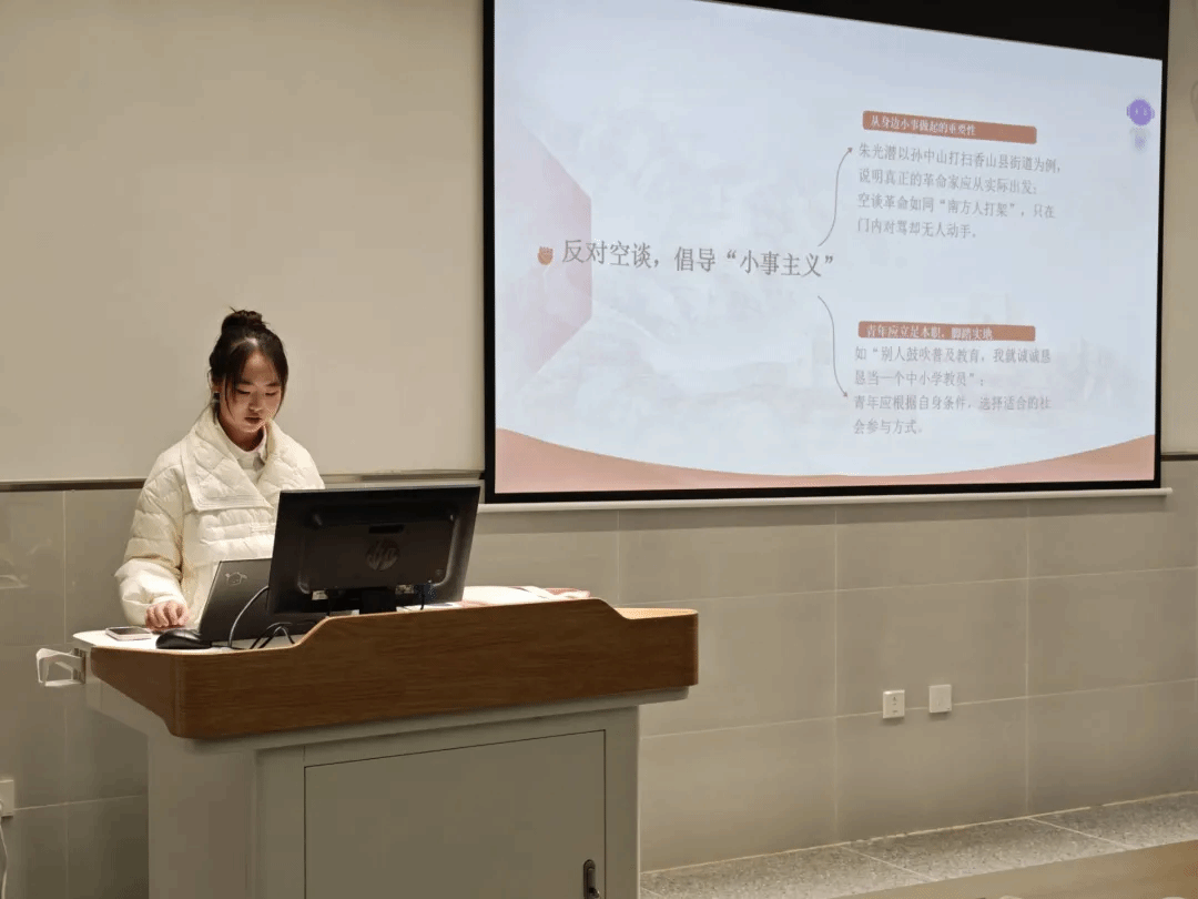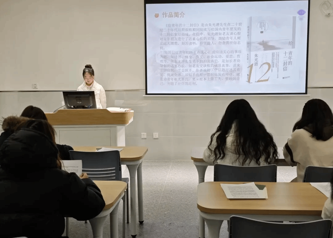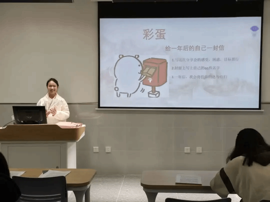 活动伊始,参与者们沉浸式研读《谈中学生与社会运动》原文,在墨香中体悟经典文字的思想力量。随后,主讲人张馨予同学系统介绍了书籍创作背景与朱光潜先生的思想脉络,以“反对空谈、倡导‘小事’主义”为核心,深入剖析当代青年在个人成长与社会责任间的平衡。活动尾声设置暖心彩蛋环节,参与者们提笔写下给一年后的自己的书信,将本次党课的思考与感悟汇于笔端,为青春成长留下珍贵注脚。