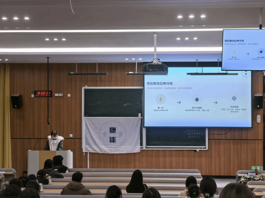 活动开始前,同学们有序进入讲堂签到,并在签到处领取精美书签。有序落座后,由康体π工作室成员李思奇同学在莲池书院进行讲座讲解羽毛球赛前、赛后运动热身的注意事项以及运动保护。由康体π工作室成员唐烨同学在现场进行羽毛球赛前热身,扭伤现场急救以及赛后康复训练的演示。同学们踊跃参加并认真对待此次体验互动,结束后领取了参与奖品护腕一份。此次活动,让同学们对羽毛球的运动知识有了更深的了解,收获很大。