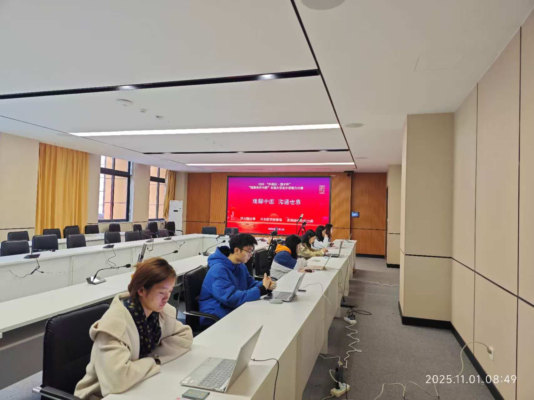 2025 年 11 月 1 日,“外研社・国才杯”“理解当代中国” 外语综合能力大赛四川省赛川北医学院分赛区赛事,在甘露书院南 207 会议室圆满收官。作为校级“外语+医学”交叉育人体系的重要实践载体,本次赛事为全校学子搭建了展现外语能力与医学素养的综合平台,吸引了来自临床医学、护理学、医学影像学等多个专业的100余名学生踊跃参加。