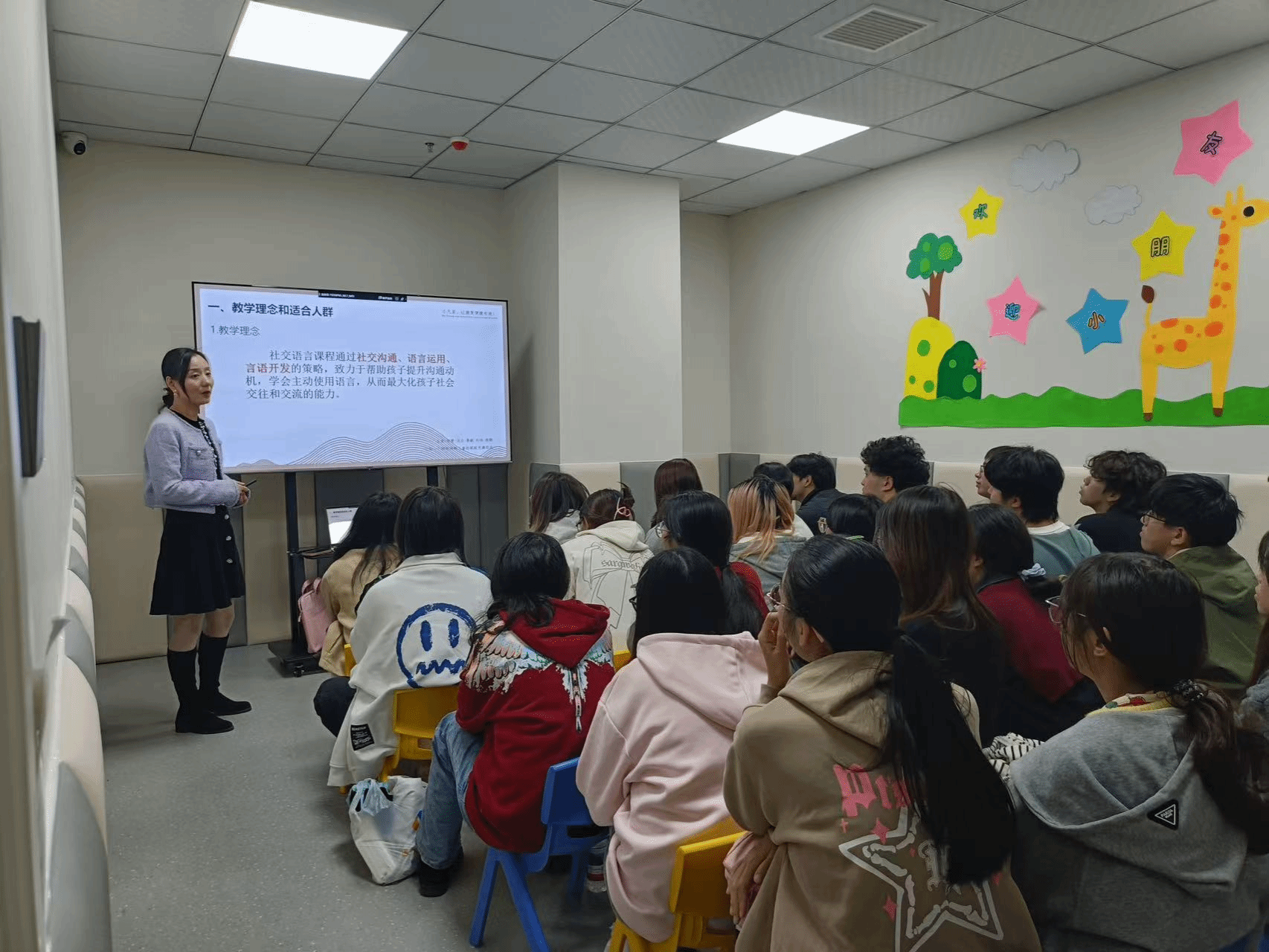 2025年10月22日下午,为建设《儿童语言发育迟缓》《语言学与病理语言学》应用型课程,相关教师胡正旗、李哲、赵锐带领听力与言语康复专业2023级学生到南充小凡星儿童康复中心参观学习。
