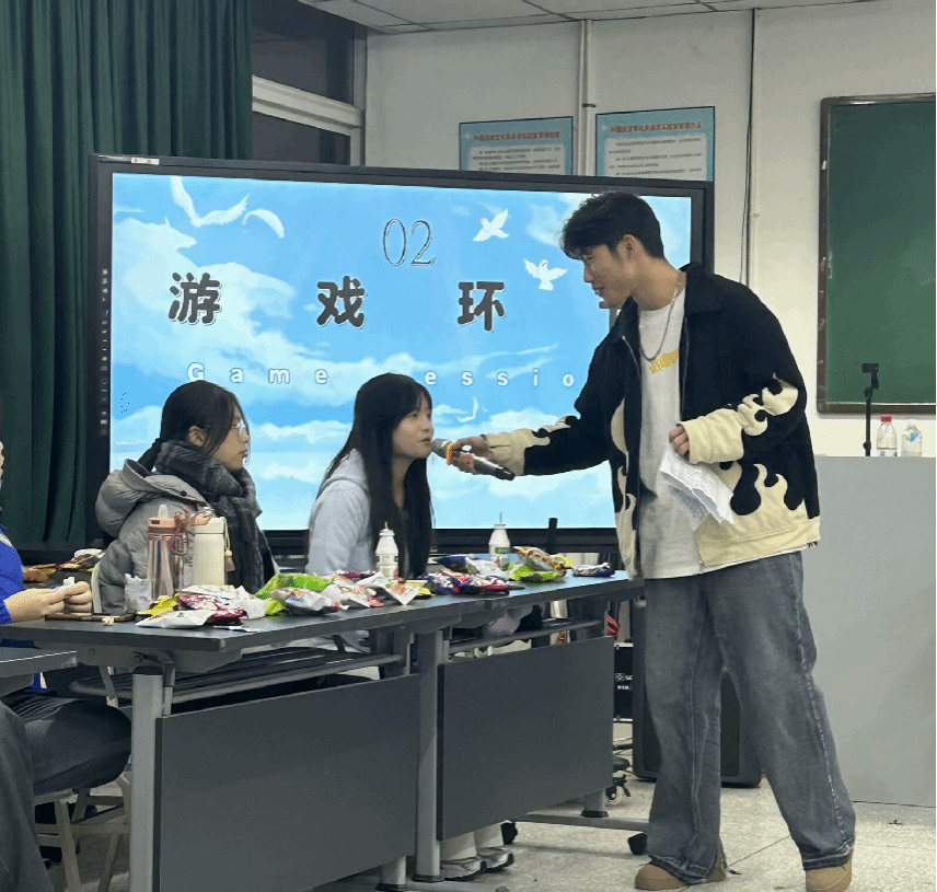 晚会在欢乐的游戏中拉开序幕。首先进行的是“击鼓传花”,同学们踊跃参与,现场氛围轻松而愉快,拿到花的同学接受“惩罚”,他们的表演引得现场笑声不断。紧接着的“时间炸弹”将晚会氛围推向高潮,参与的同学都展现出良好的团队精神。最为精彩的当属“憋笑挑战”,每一位挑战者都带着对胜利的渴望,努力“保持严肃”。