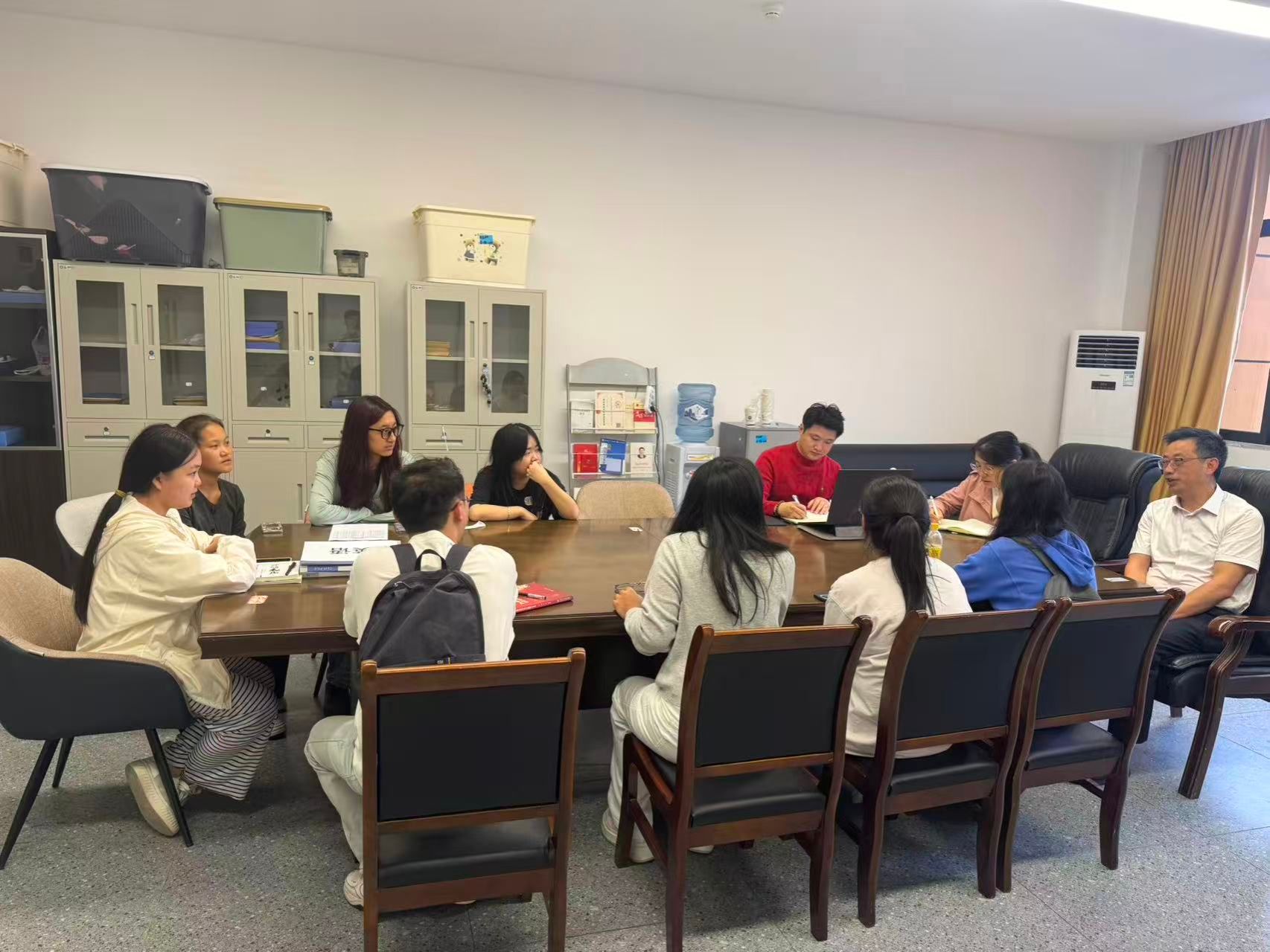 10月13日,外国语言文化系党总支在甘露书院南204学生科办公室组织召开少数民族学生座谈会。外语系党总支书记、系主任张思国,副书记李卫星,辅导员廖文豪出席座谈会,各年级少数民族学生参加。