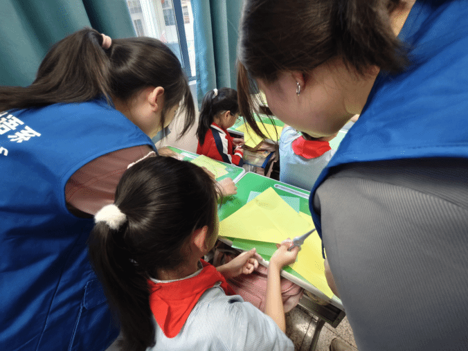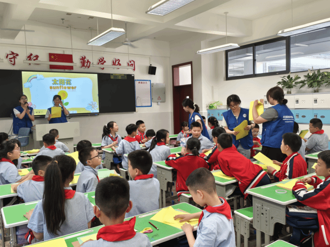 图为小朋友们完成太阳花手工制作积极展示。李思雨 供图
