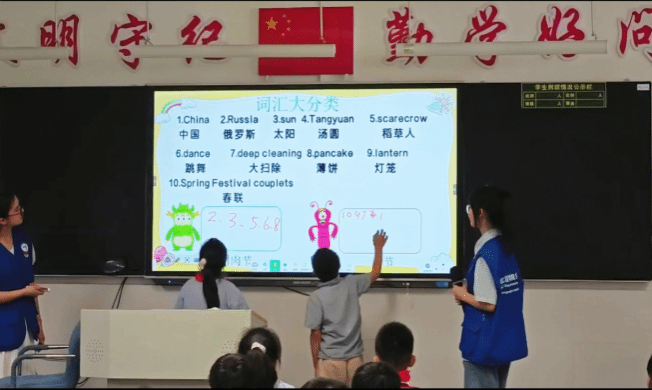 作为"学习世界文明,讲好中国故事"系列实践活动之一,本次活动由学生党员和共青团员组成的教学团队精心设计。活动从猜春节谜语开场,通过对比谢肉节煎饼与中国汤圆的象征意义、节日习俗等,引导学生理解文化多样性。现场还设置了单词跟读、词组归类游戏和太阳花手工制作等互动环节,孩子们积极参与,气氛热烈。