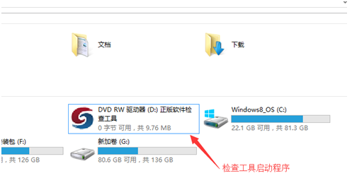 将检查工具光盘放入电脑光驱中,打开我的电脑,双击打开正版软件检查工具,进入检查工具工作页面。