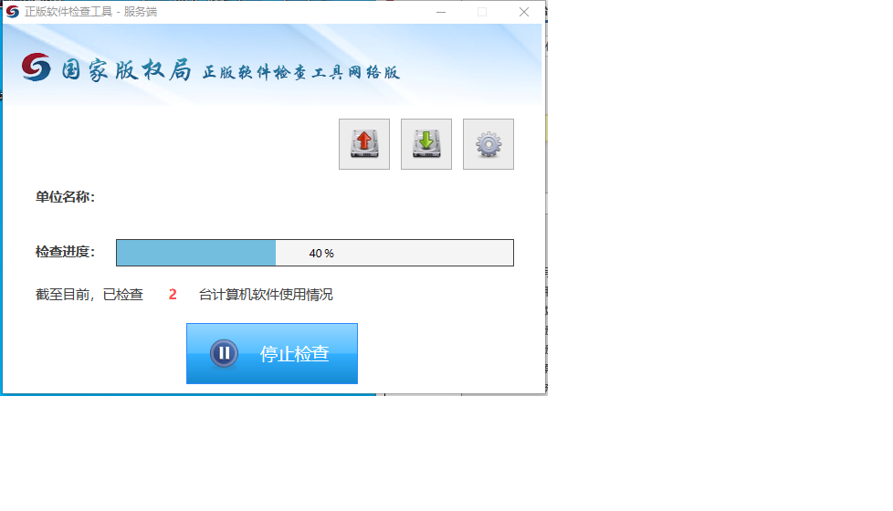 (2) 数量较少情况下,正版软件检查过程需要持续3-5分钟,当已检查的计算机台数不再有变化的时候,检查组工作人员可点击“停止检查”按钮,完成本次检查操作。具体检查时间可参考一下:
