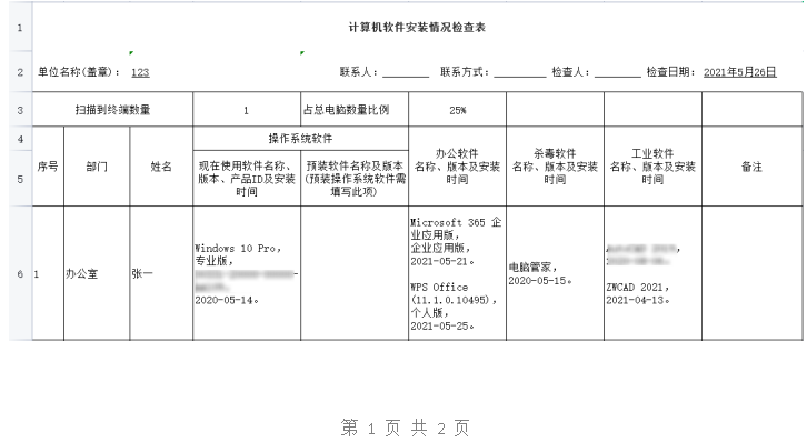 用于维护单位内部计算机使用情况,生成正版软件检查客户端,执行软件正版化检查并输出“计算机软件安装情况检查表”。