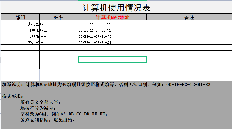 (2) 点击“下载 计算机使用情况表 表格模板”按钮,将表格模板保存至本地磁盘,并按照表格中的要求收集并填写计算机使用情况。