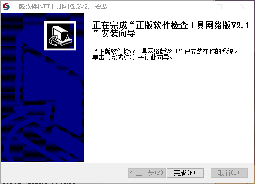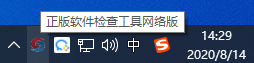(4) “正版软件检查工具网络版”安装完成后,将在操作系统桌面的右下角生成一个带有版权局Logo的小图标,表示正版软件检查工具网络版客户端已经安装成功。