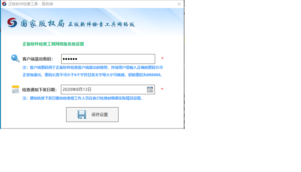 (5) 完成安装后,双击桌面上的快捷方式即可运行“正版软件检查工具网络版服务端”。