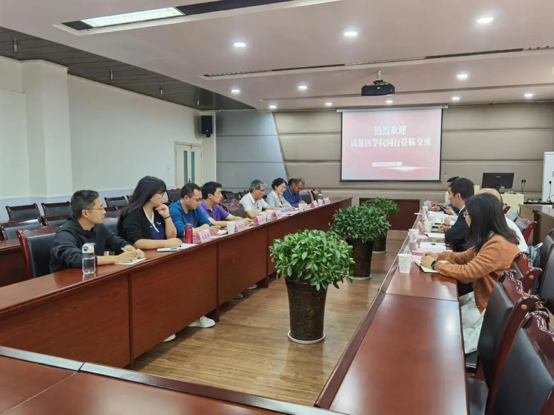 会上,杨健首先对贾旭一行的到来表示欢迎,介绍了本院在学科建设、人才引进、科学研究、教学管理等方面的情况,希望以交流考察为契机,加强双方相互学习,在多个层面展开更深的合作,促进彼此教学科研工作的高质量发展。贾旭简要介绍了成都医学院基础医学院相关情况,随后双方对彼此关心的问题进行了深入交流。