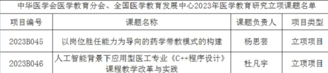 6. 我校2项课题喜获中华医学会医学教育分会、全国医学教育发展中心2023年度医学教育研究课题立项