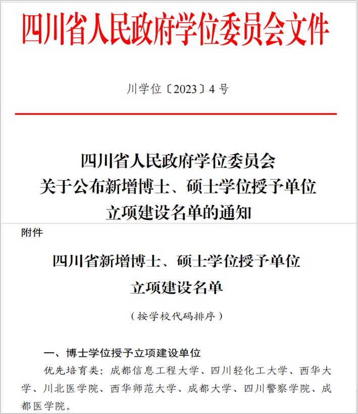 1. 喜报!学校获批四川省博士学位授予立项建设“优先培育类”单位