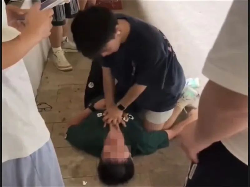 9.学生英勇施救,校园上演生命接力。