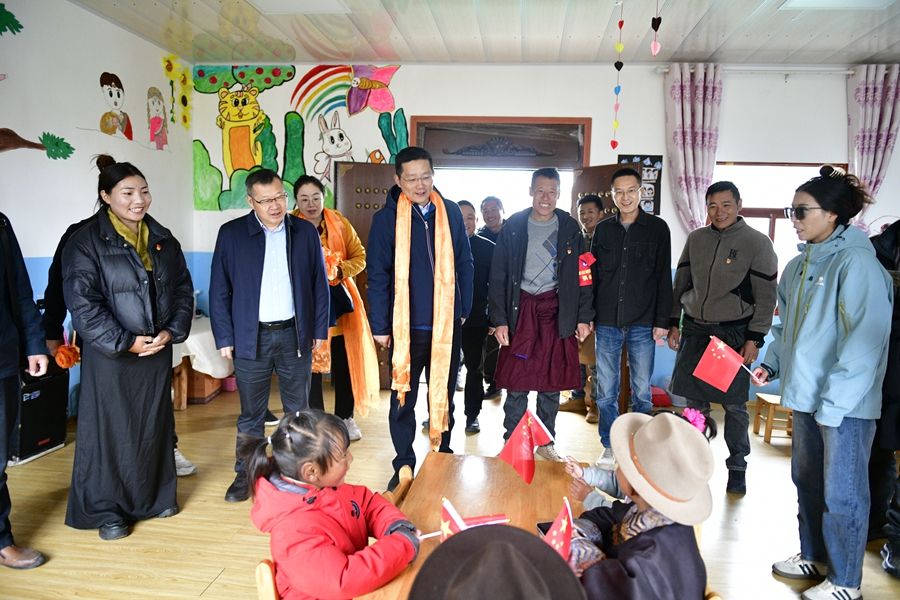 调研组先后前往郎日村、日美村召开驻村干部座谈会,走访慰问村幼教点师生和村民代表,考察党群服务中心、腊肉加工坊、藏式民宿建设情况。