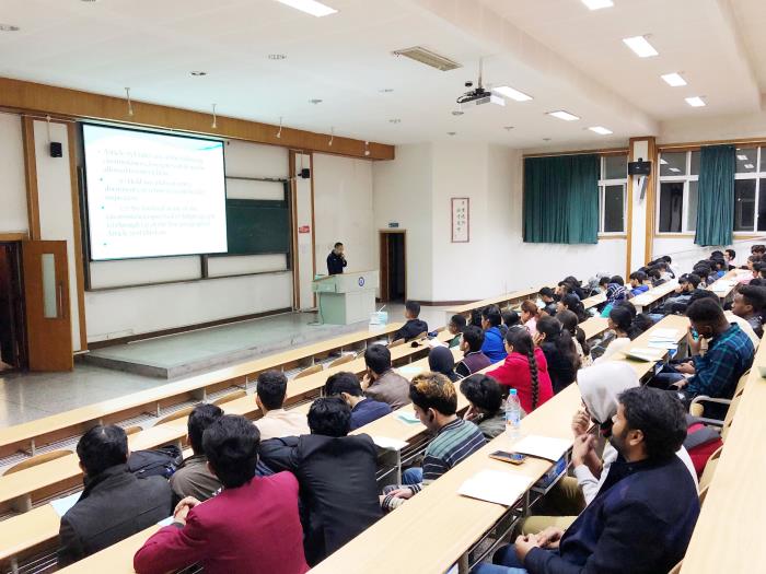 在讲座中,王海波警官对签证办理及超期风险问题处理办法、交通安全知识、机动车驾驶牌照办理规则、机动车驾驶安全问题、校外租住所需法律程序及需承担的风险、非法务工需承担的相应风险及进行合法勤工俭学所需材料等方面作了详细介绍。留学生们认真聆听了法制讲座,并与王海波警官进行了充分的现场交流。
